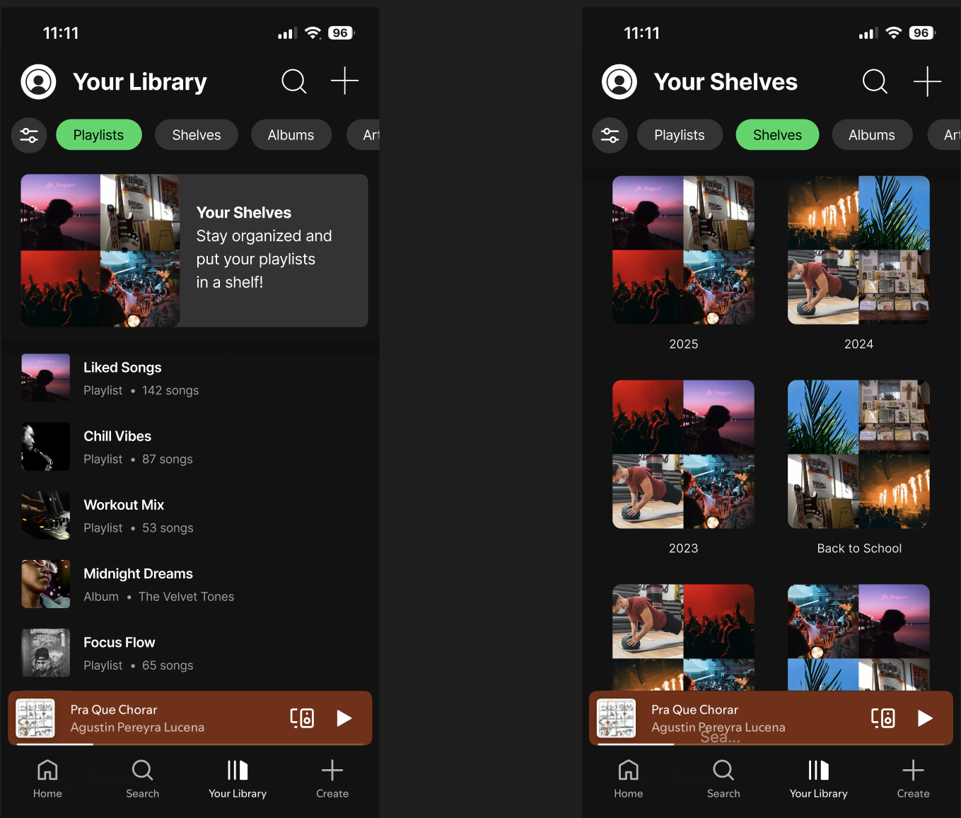 Instead of redesigning Spotify’s UI, I introduced a new feature: Shelves.